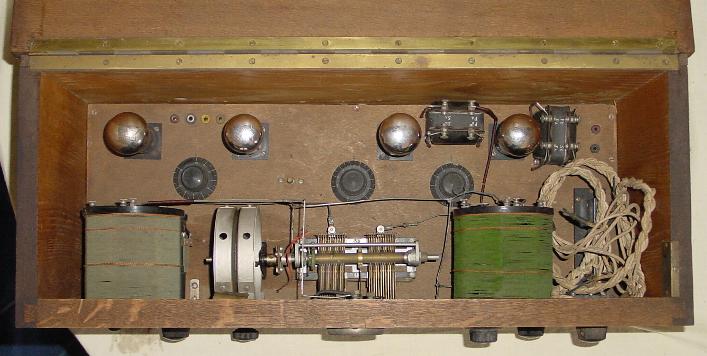 Dieser professionell gemachte Eigenbau-Neutrodyne-Empfänger wurde wohl in Berlin gebaut, jedenfalls habe ich ihn 1978 dort in einem Trödlerladen für 30.-DM gekauft. Die Rückkopplung erfolgt mit einer drehbaren Spule innerhalb der rechten Schwingkreisinduktivität.